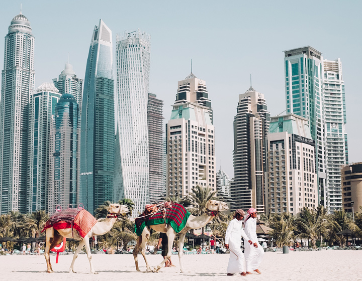 Dubai lies directly within the Arabian Desert. However, the topography of Dubai is significantly different from that of the southern portion of the UAE in that much of Dubai’s landscape is highlighted by sandy desert patterns, while gravel deserts dominate much of the southern region of the country.[55] The sand consists mostly of crushed shell and coral and is fine, clean and white. East of the city, the salt-crusted coastal plains, known as sabkha, give way to a north-south running line of dunes. Farther east, the dunes grow larger and are tinged red with iron oxide.
